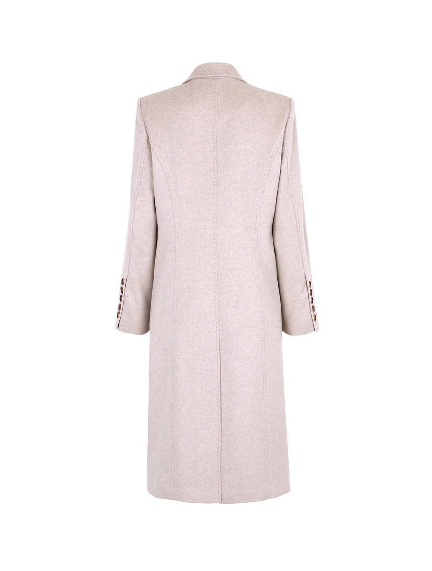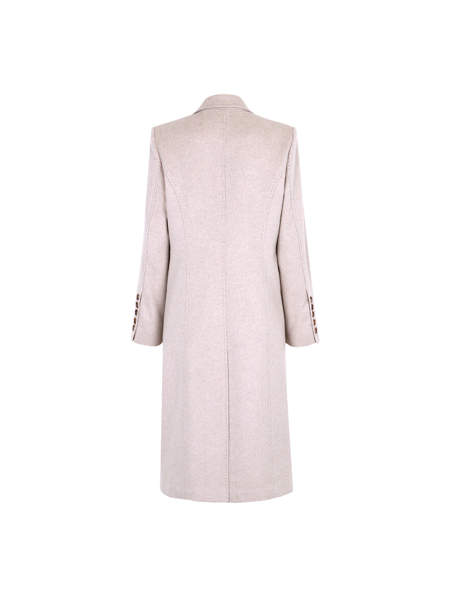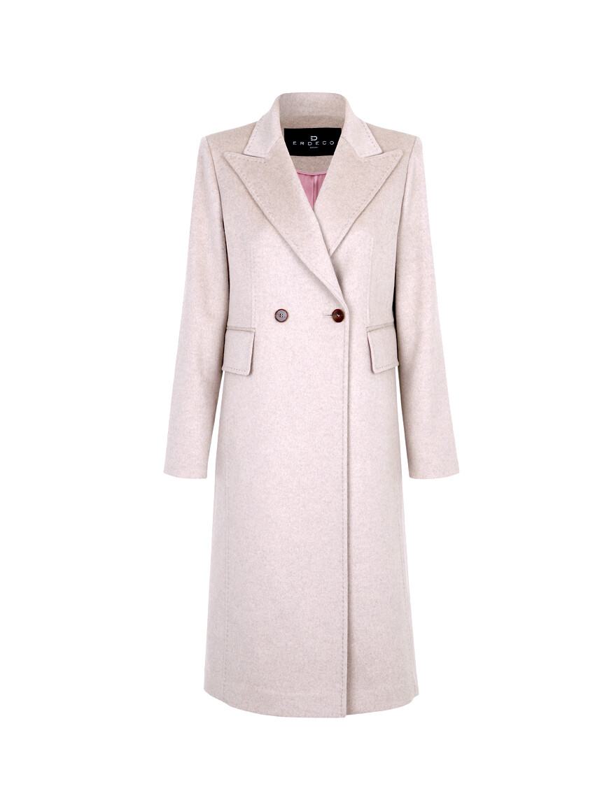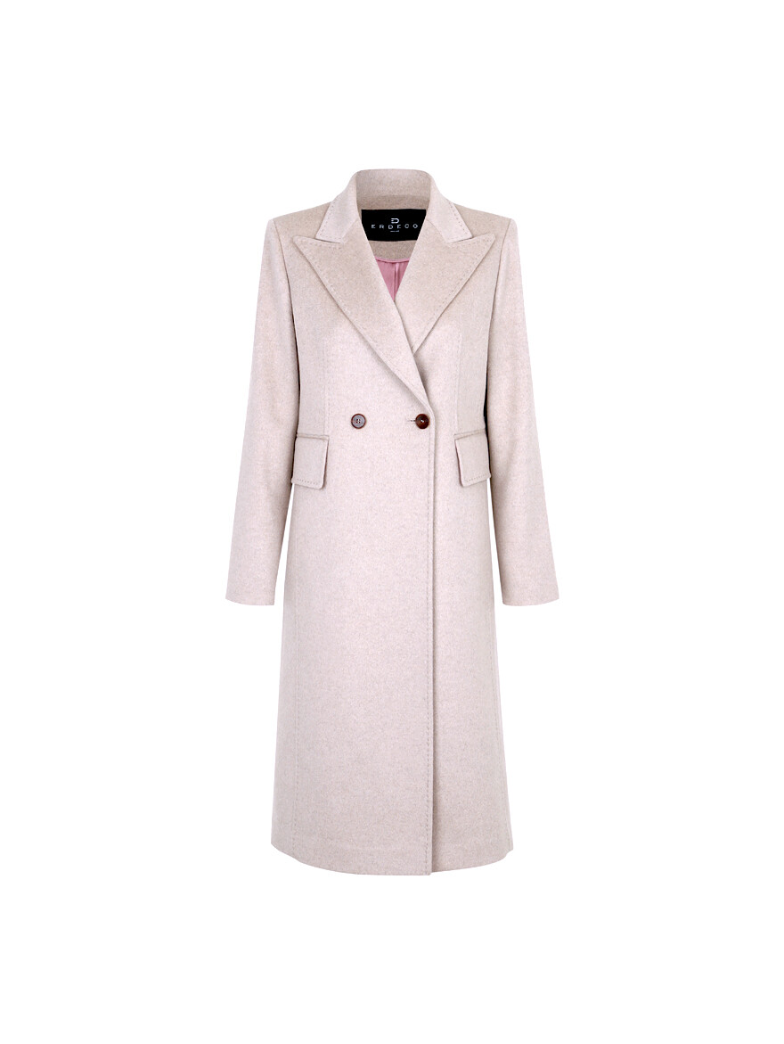 원피스와 입어도 다리를 가려줄 수 있을 만한 롱 기장으로 추운 계절에도 몸을 보호하고 따스하게 입을 수 있도록 제작된 여성캐시미어코트로 소매나 전체적인 기장 역시 신체 측정을 통해 원하는 대로 맞출 수 있다.