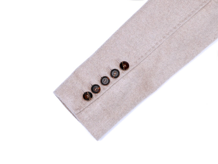 원단은 다른 소재가 섞이지 않은 이태리 퓨어 캐시미어 100이며 화이트보다 따스하고 질감이 느껴지는 오트밀이다.