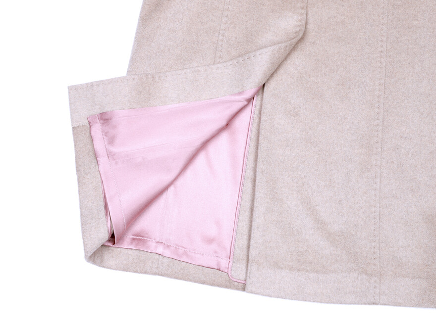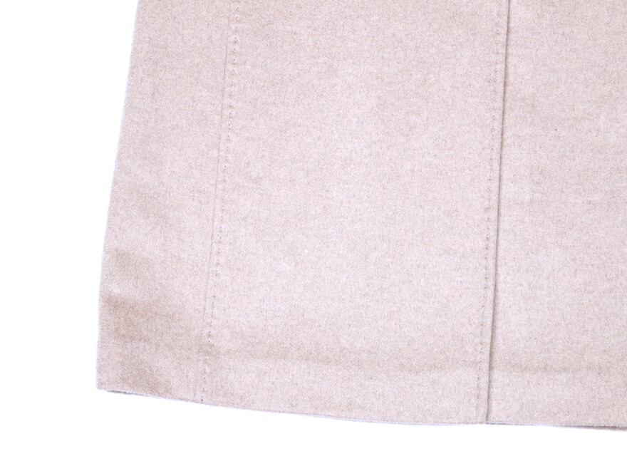 이번 여성캐시미어코트도 어김없이 속에서 밀리는 느낌 없는 편안한 착용감과 높은 퀄리티를 위해 새로운 옷 한 벌을 만들듯 따로 만든 후 연결하는 방식으로 제작이 이루어졌다.