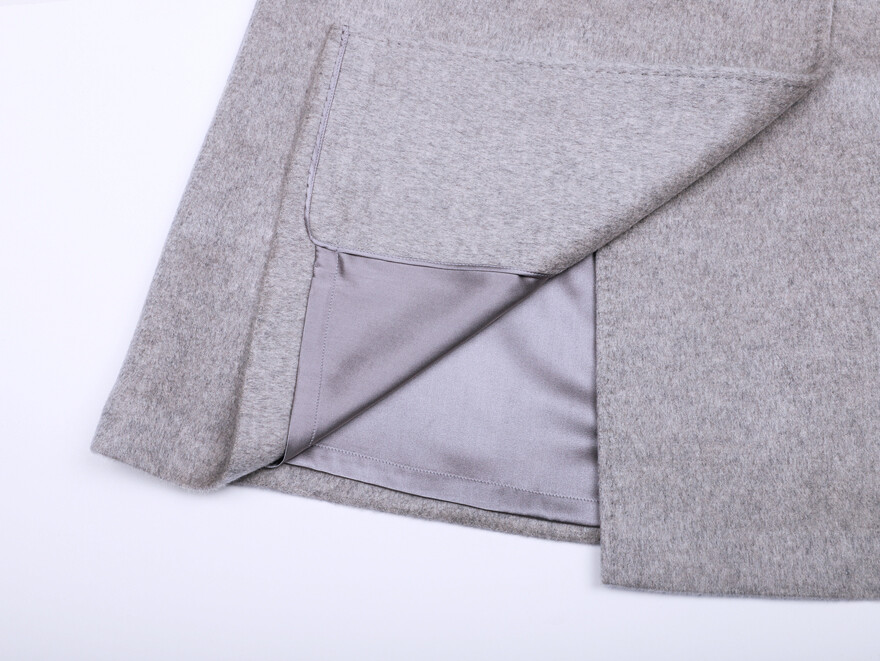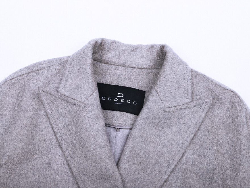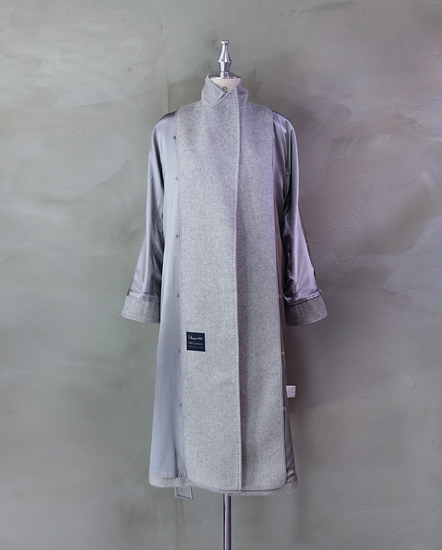 "샤르양코트"의 샘플은 이태리 톨레뇨1900 캐시미어 100% 라이트 그레이 컬러로 제작되었다.