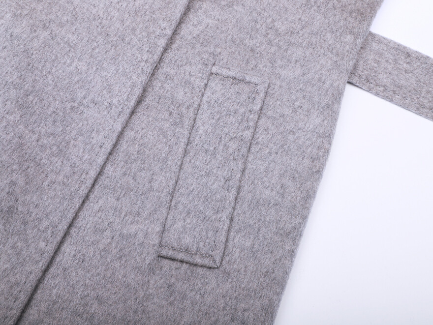 오바핏 코트를 벨트로 조여메였을시 와이드한 아웃포켓이 자연스럽게 우는 현상이 발생되었는데 이런 단점을 커버하기 위해 깔끔한 웰트포켓을 적용했다.