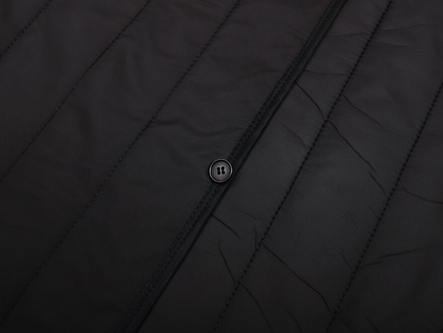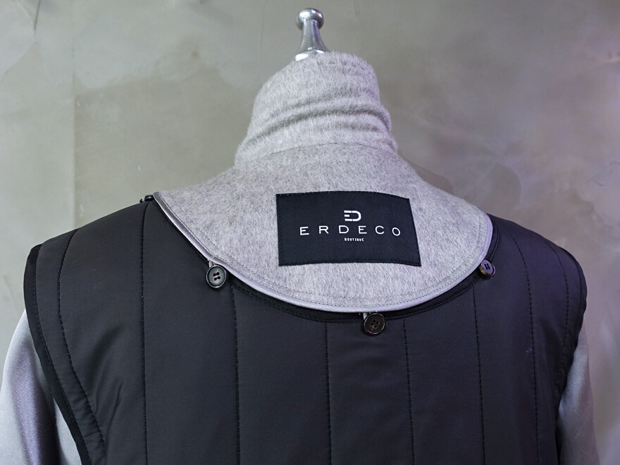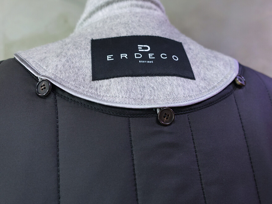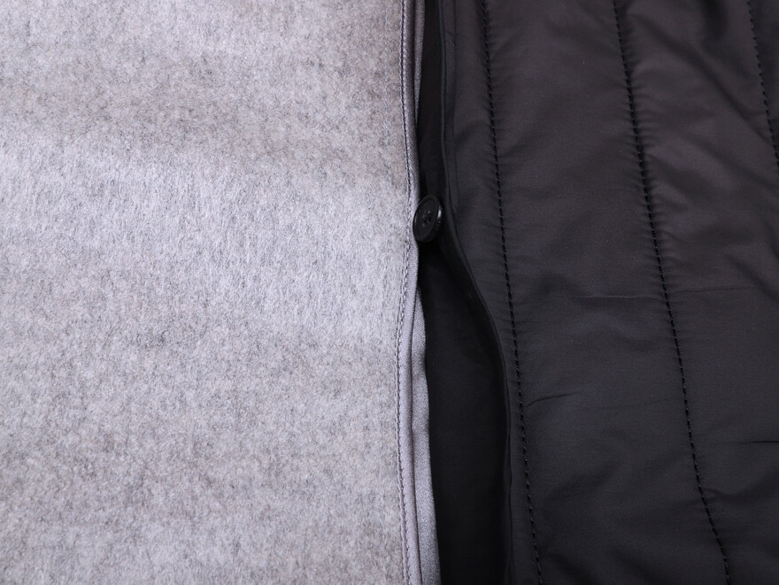 탈부착용 패딩안감은 에르데코부띠끄에서 자체제작하여 고급스러운 무광 블랙 컬러의 실외 가공된 원단으로 캐시미어의 위엄에 전혀 해가 되지 않으며, 전체적인 코트 핏라인을 자연스럽게 지켜줄수 있다.