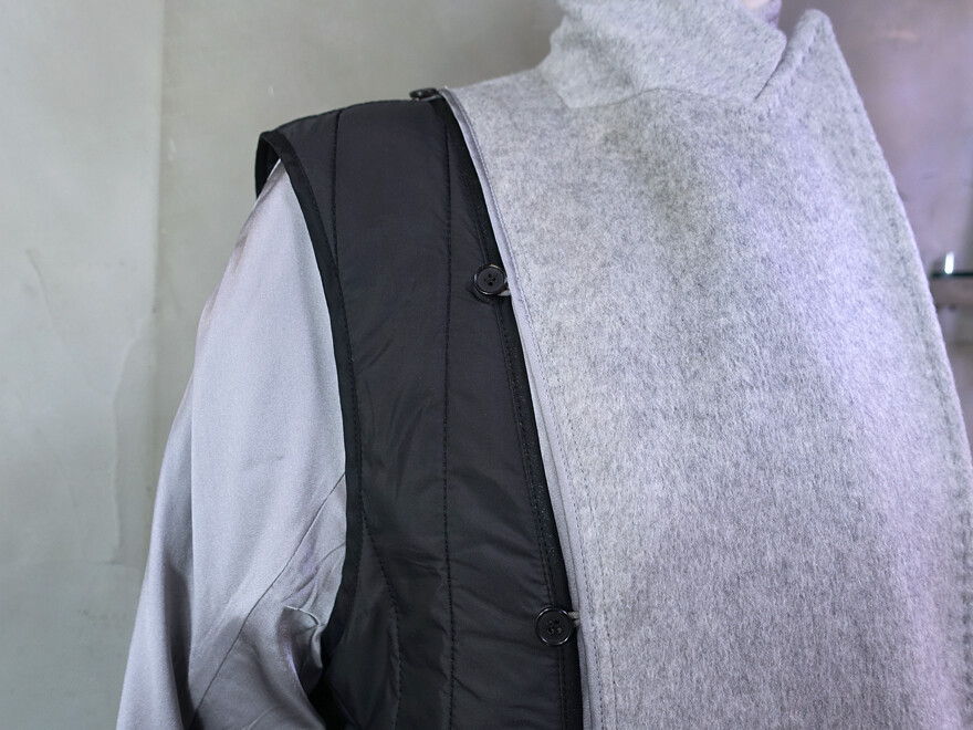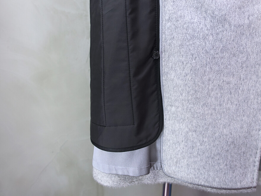 코트 탈부착용 패딩 안감은 오랫동안 지속적으로 많은 요청이 있었지만 현실적으로 가장 성수기인 겨울 시즌 대비 너무나 번거로운 작업으로 인해 매번 포기해왔던 디테일이다.