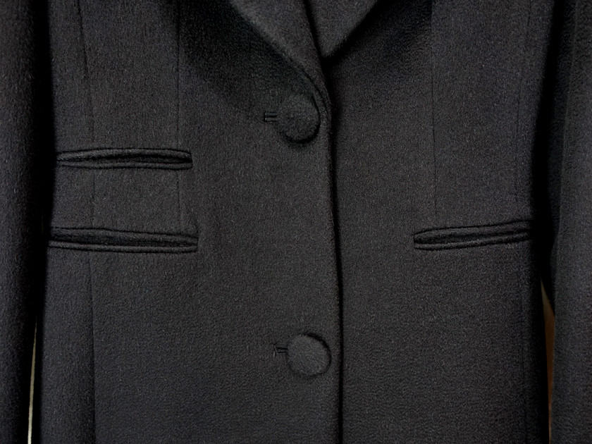 위로 향한 깃과 부드러운 곡선으로 내려오는 보드 피크드 라펠은 기품과 아름다움을...
