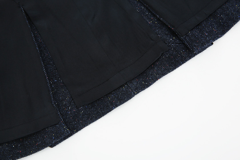 웨스트라인은 최대한 잘록하게 표현되도록 양트임으로 전개하였고, 납작 양면 싸개단추로 고급스러움도 포기하지 않았다.