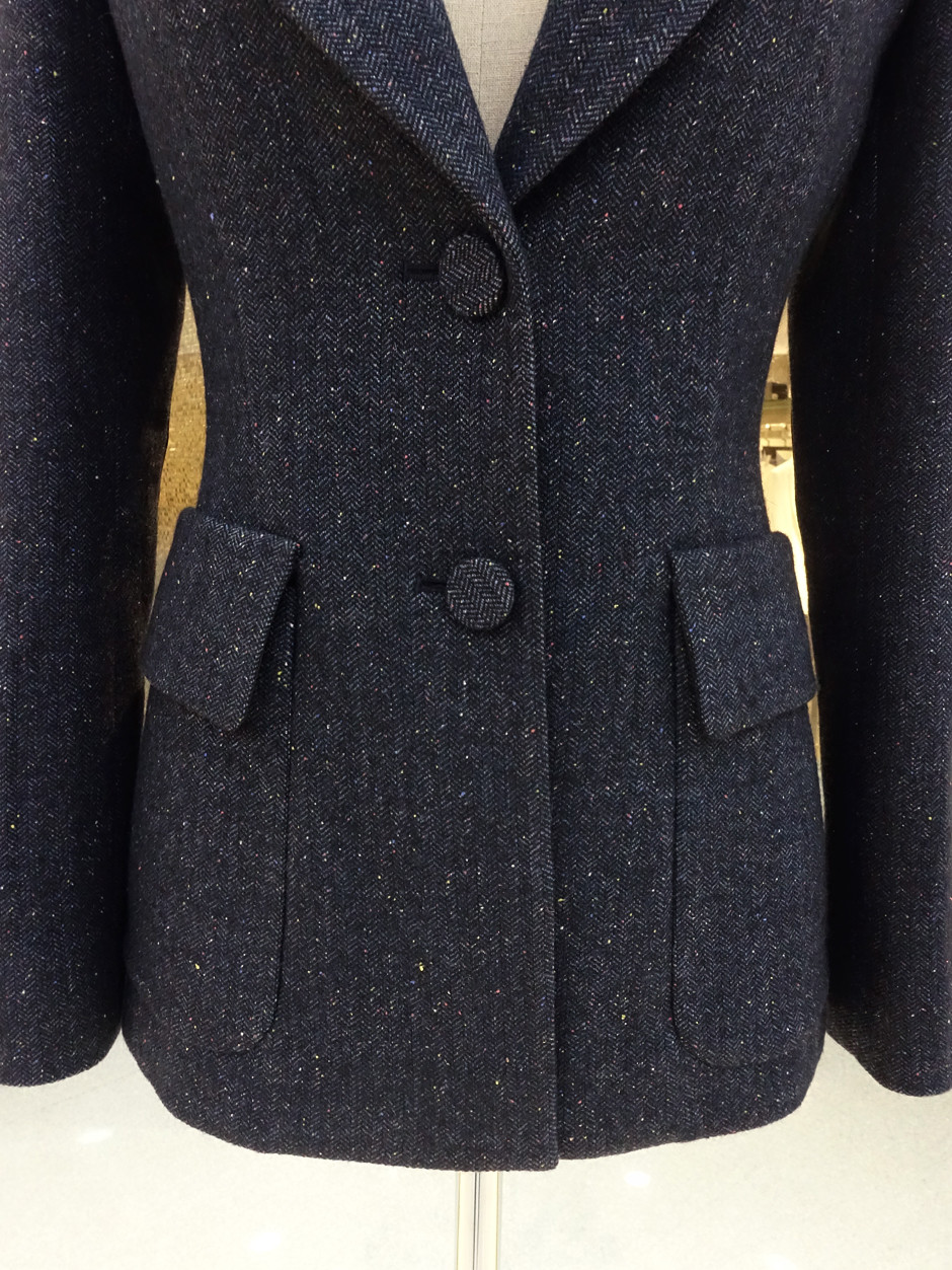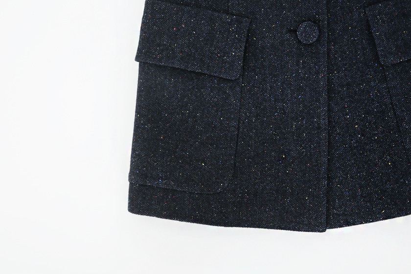 헤링본 조직 곳곳에 핑크, 노랑, 블루등의 실이 콕콕 박혀있어 생동감있는 여성스러움을 전해주며, 어디서도 볼수 없었던 유니크한 헤링본자켓으로 탄생될수 있었다.