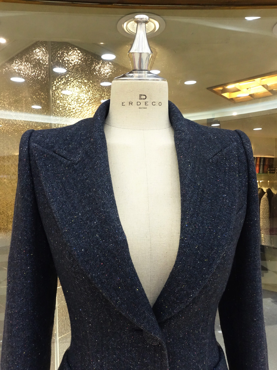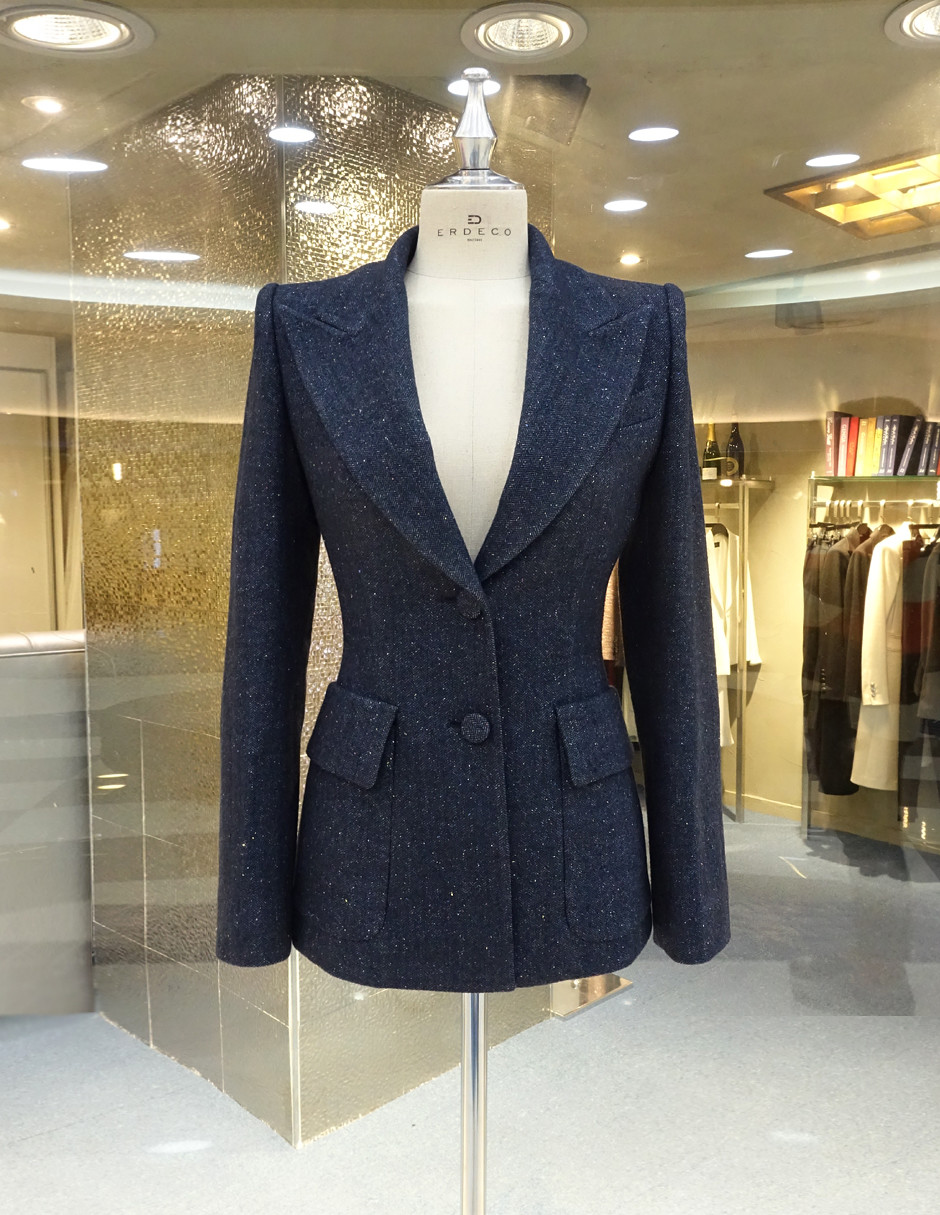 에르데코 부띠끄에서 선보이는 "컬러톡톡 가죽패치 헤링본 자켓" 은 자연스러운 실루엣을 벗어나 아름다운 여성미를 최상으로 이끌어 제작하였다.
