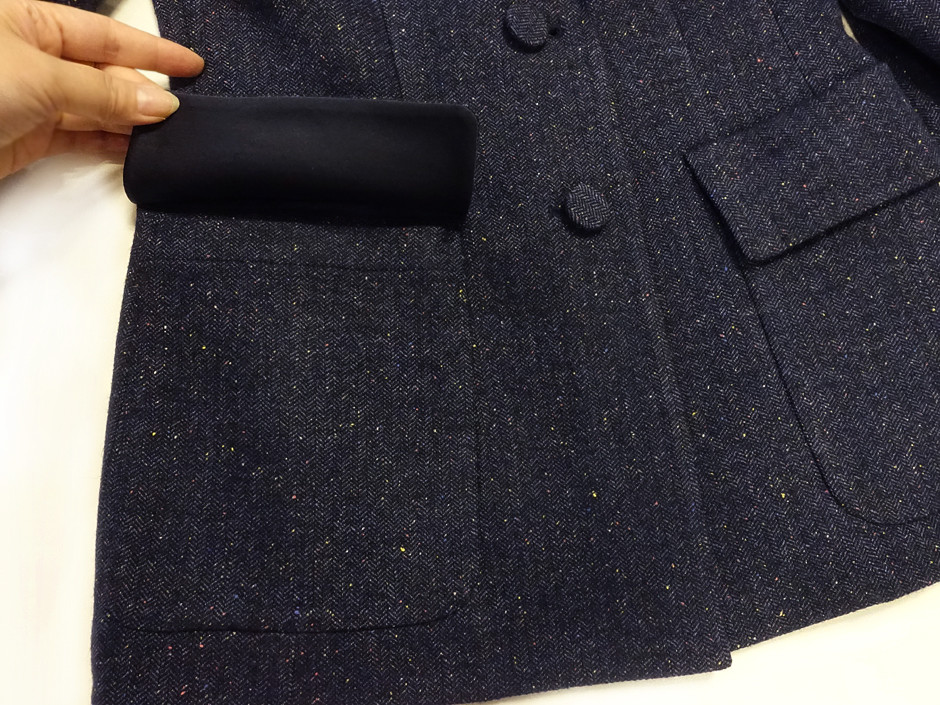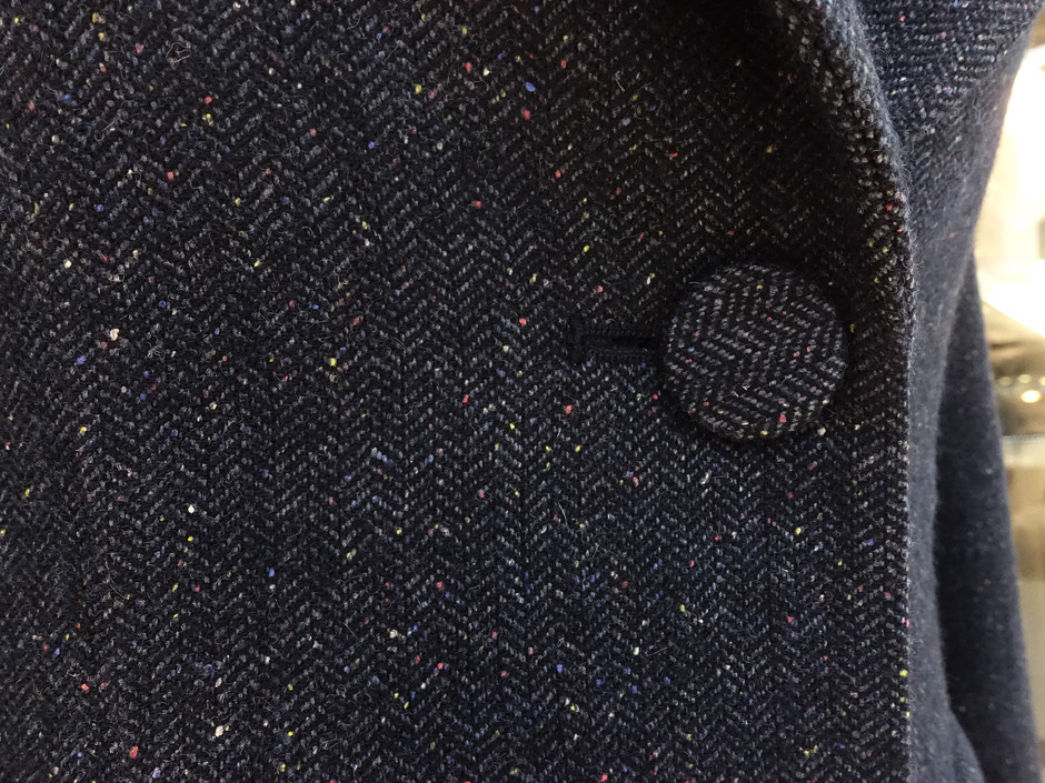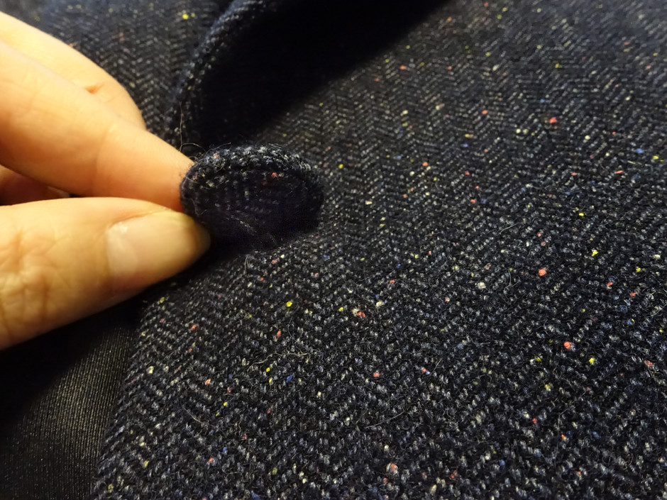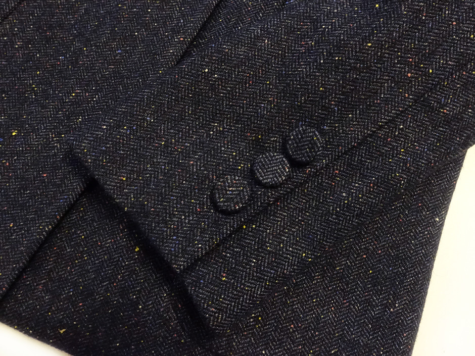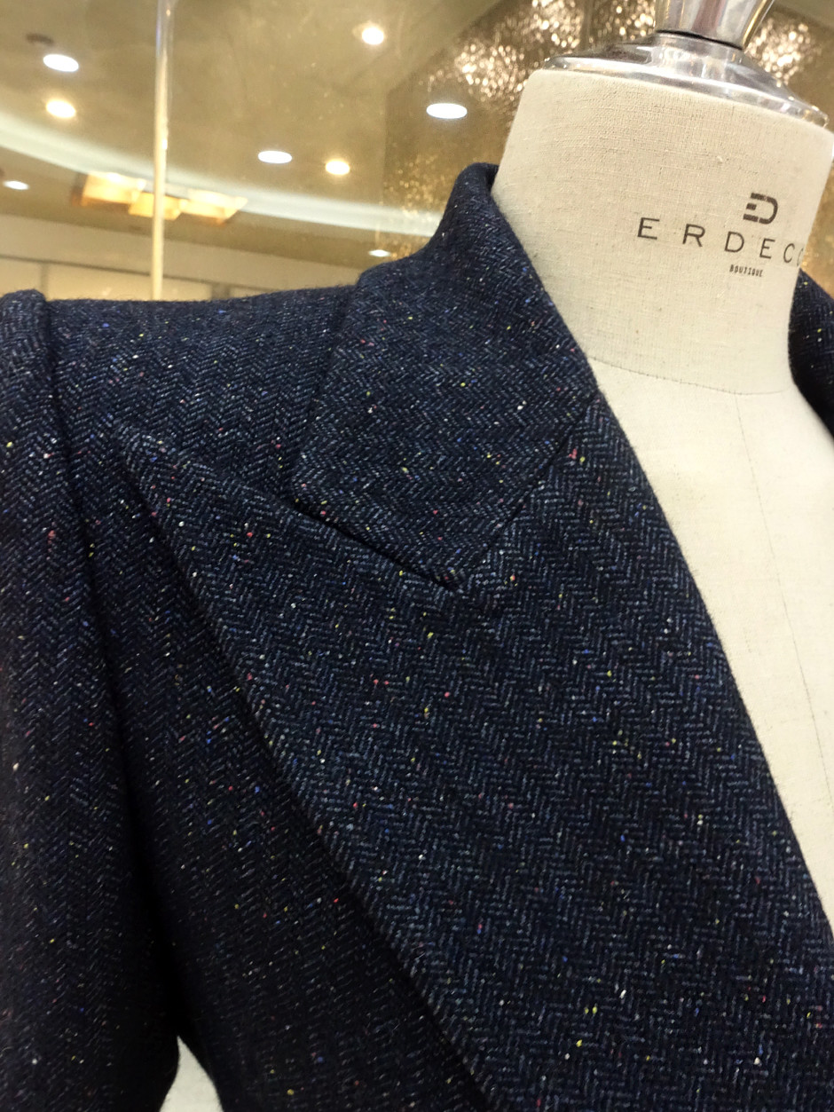 가장 중요한 "컬러톡톡 가죽패치 헤링본 자켓"의 원단은 어렵게 구해온 일본 수입 옷감이다.