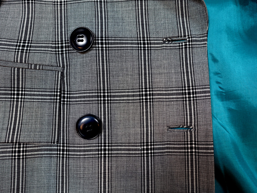 이는 키에 따른 등길이 조정뿐 아니라 카라와 라펠사이의 고지선위치, 포켓위치등도 조정해주고있다.