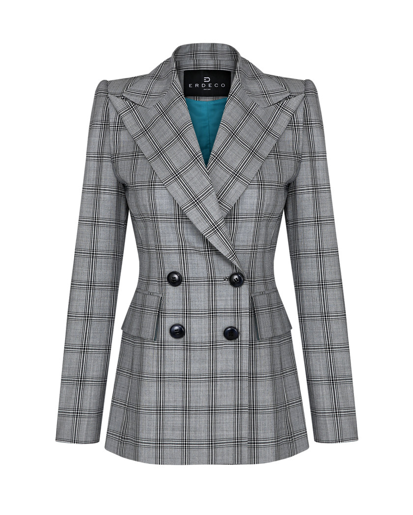 와이드라펠 체크자켓