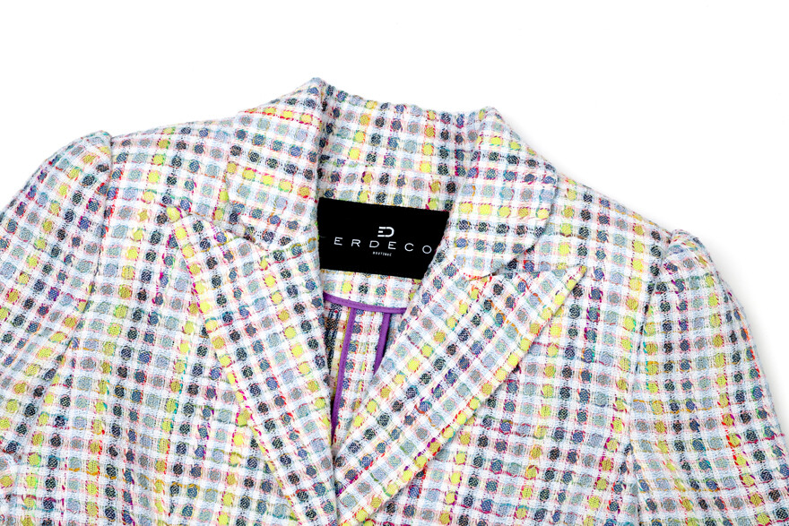 본래 여름트위드자켓은 이렇게 안감 없이 시접을 따로 처리하여 마감하는 경우를 선호하지만 안감이 있어야 편안함을 느낀다면 전체 안감으로 변경도 가능하며 두 가지 면모를 적절하게 조율한 반안감으로도 제작이 가능하다.